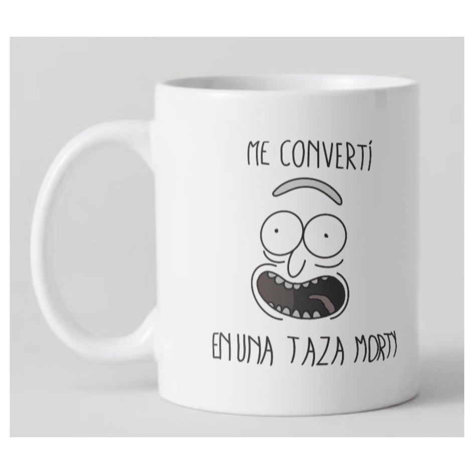 Con un diseño colorido y una impresión de alta calidad, la frase «¡Me Convertí en una Taza, Morty!» aparece de manera destacada, acompañada de la estética propia de la serie. Además, es una taza resistente, apta para microondas y lavavajillas, lo que la convierte en un regalo funcional que se puede disfrutar cada día.